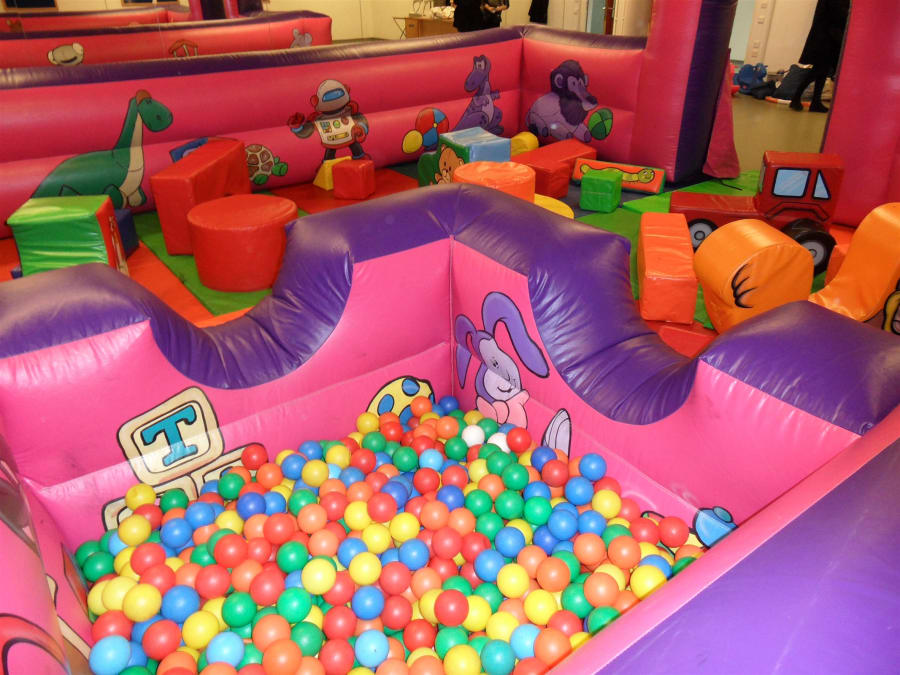 Kids instantly love its gaily-coloured structure. Inflatable barriers and protective matting keep them safe within. There's so much for them to explore. In one corner is a small ball-pond, while the remaining area is full of brightly-coloured inflatable shapes to investigate. They'll want to try everything! Even better, parents may join their children inside too.
