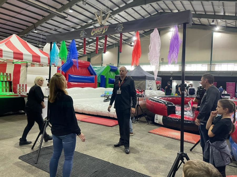 Catch it has 10 items above your head which are released with a random drop pattern, the aim is to move as quickly as possible and catch as many items. We have 2 types of attachments for this. The rods are just the start and what comes as standard. Making things a little easier we can use the hanky-chiefs etc.