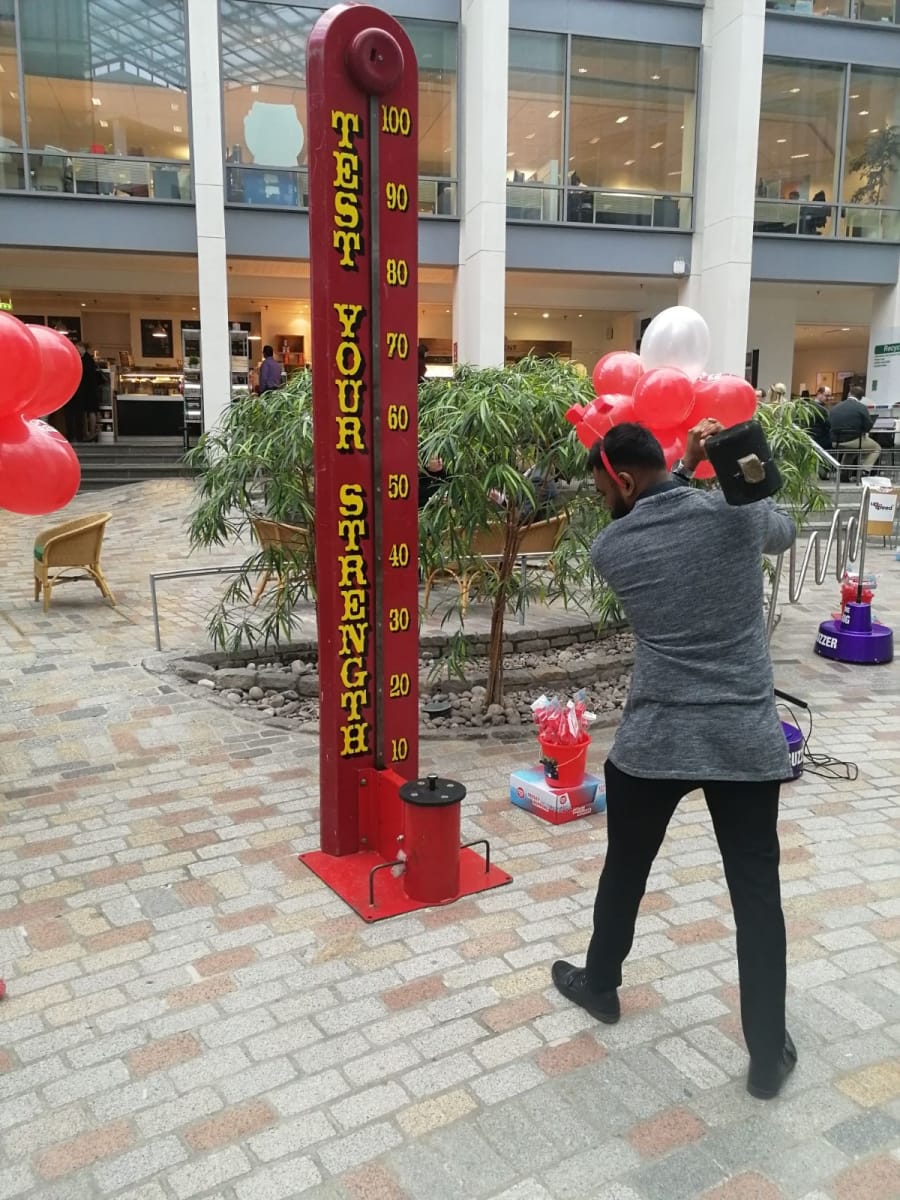 Strongman Strikers Step right up one and all, and test you strength. Can you ring the bell with one huge swing of the hammer onto the pad? Known as strongman strikers and test-your-strength machines, these fairground games are a sure-fire way to pull in the crowds and provide some sensational photo-opportunities for all your guests, too. We've got children's strikers, adult strikers, high and low strikers, ring the bell strikers; the list is virtually endless. What's more, our strikers are a crowd-pleaser for every special occasion, including school fêtes, family fun days, company fun days, and corporate events. And if you're planning an indoor or outdoor fair, it simply won't be complete without one or two of our strikers. Just the thing for fundraising too. We deliver to these locations: London (North London, East London, North-East London & Central London), Essex, Kent, Hertfordshire, Surrey and Sussex.