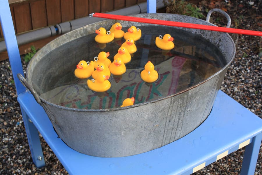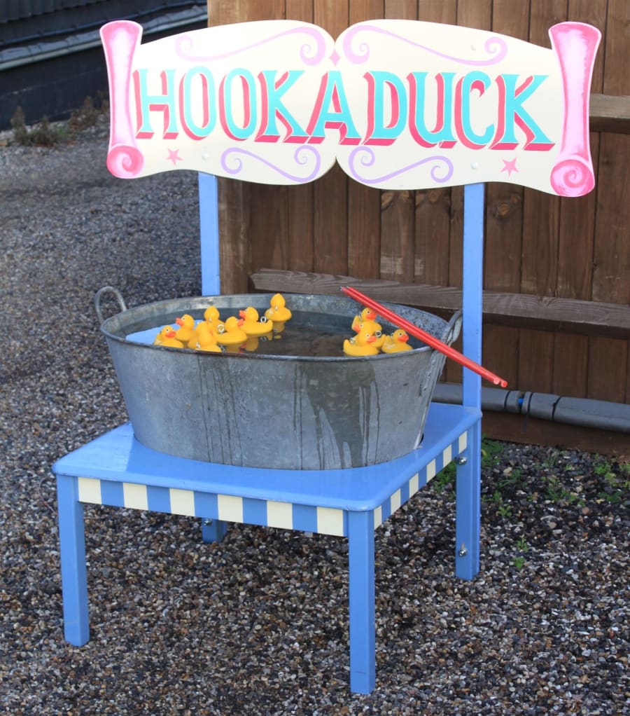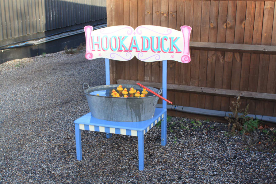 This cute little Hook-a-duck stand is a traditional fairground, summer fetes or fund raising attraction. Hook a duck and win a prize! An excitement for little ones using a little fishing rod with being surprised with a prize.